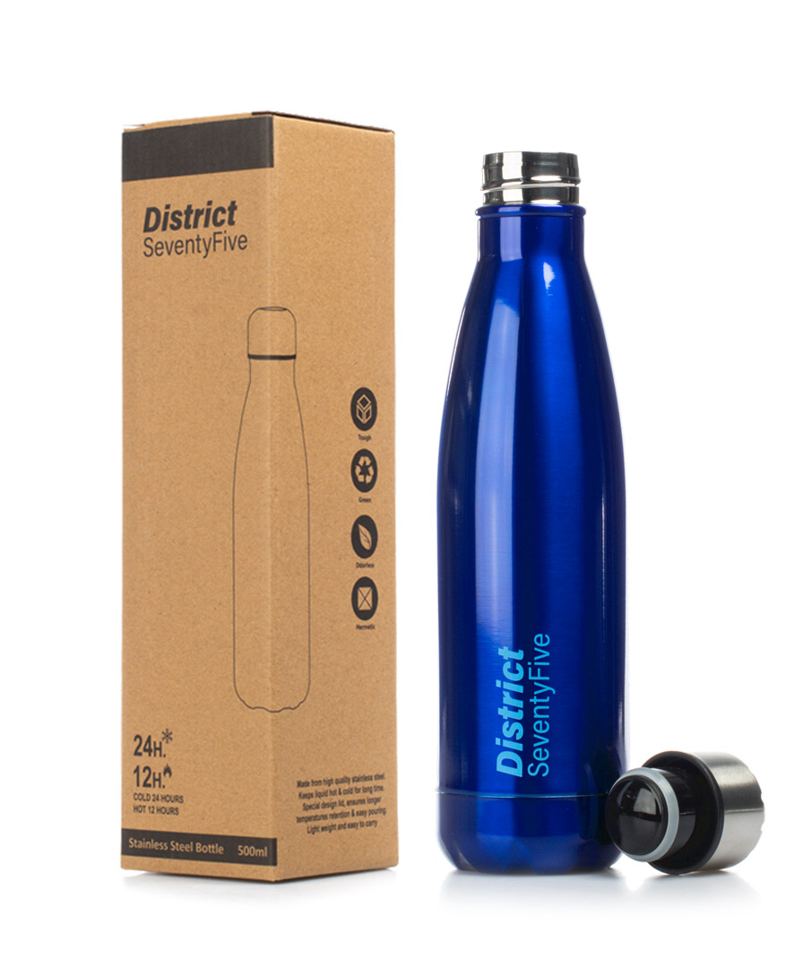 Do yourself a favour and enjoy your favourite drink, with the DISTRICT75 Bottle! The eco-friendly thermos bottle is constructed from durable, high-grade stainless steel, in order to preserve the flavour and freshness of your drink, without any tainting.
